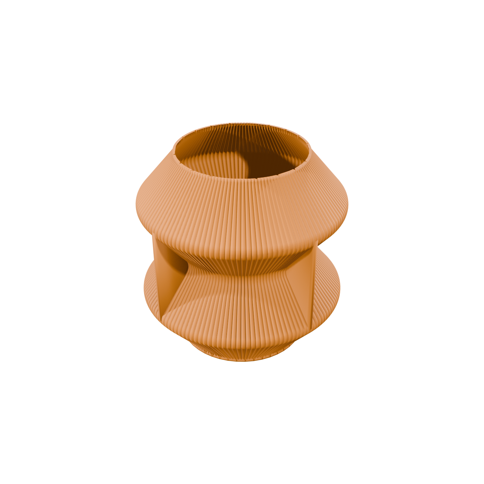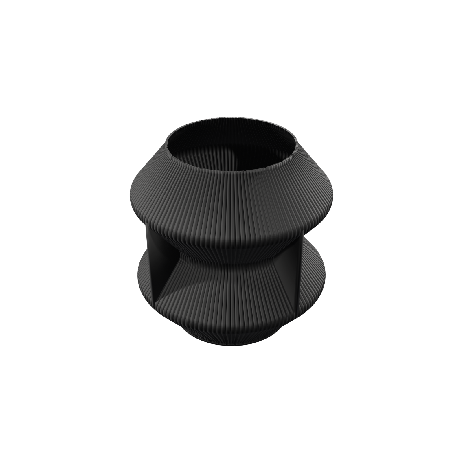 3D printed in high-quality PLA, the UOOLA Vase wraps continuous ribbing around a hexagon-inspired form. The walls gently bow outward, then pull back in, creating a wave of curves that catch light and shadow all the way around. On a bright day it looks crisp and graphic; in low light it feels soft and moody.